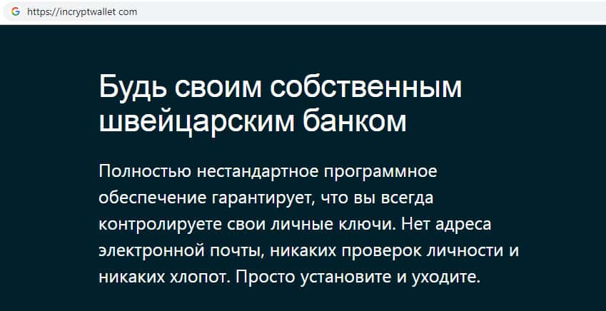 incryptwallet com - официальный интернет-ресурс криптолохотрона IncryptWallet