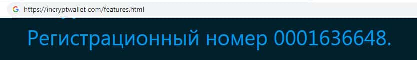 Вместо лицензии аферисты IncryptWallet предлагают пользователю взглянуть на регистрационный номер. На самом деле данная мошенническая уловка рассчитана на невнимательного пользователя, поскольку если проверить, то возможно регистрации у скам-конторы Инкрипт Валлет нет, а данный регистрационный номер может оказаться вымышленным.