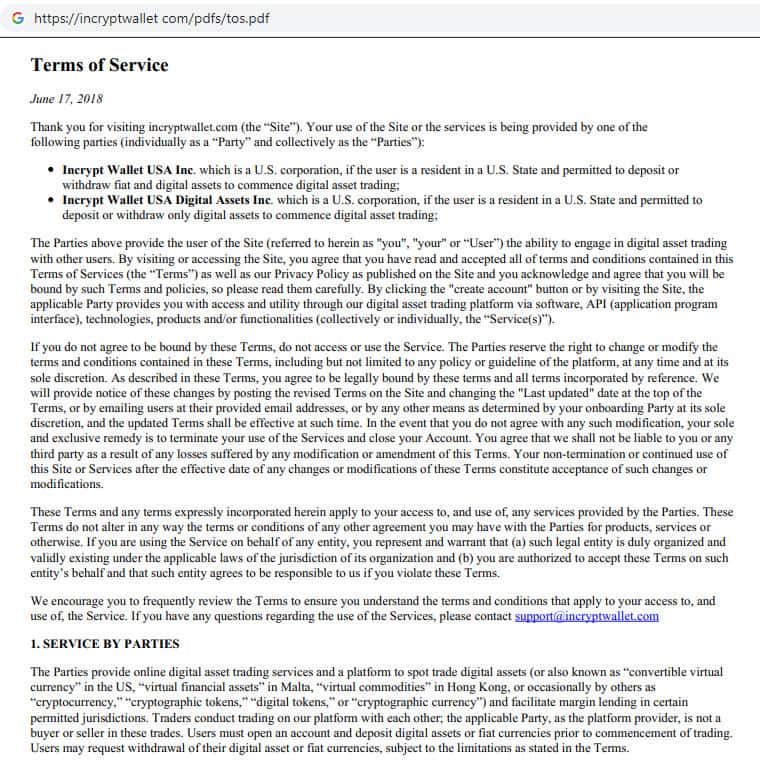 - Пользовательское соглашение на онлайн-ресурсе шараги IncryptWallet