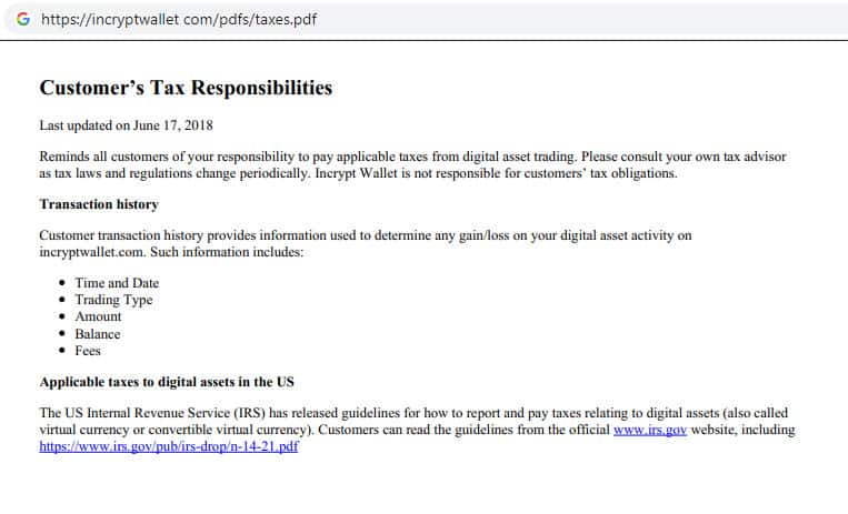 - Информация о налоговых обязанностях клиента скам-компании IncryptWallet
