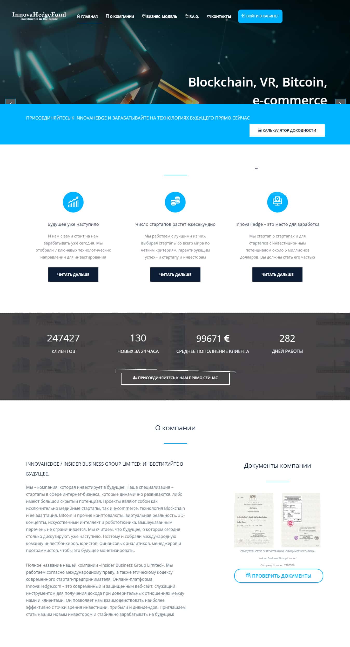 innovahedge com - официальный ресурс конторы Иннова Хедж