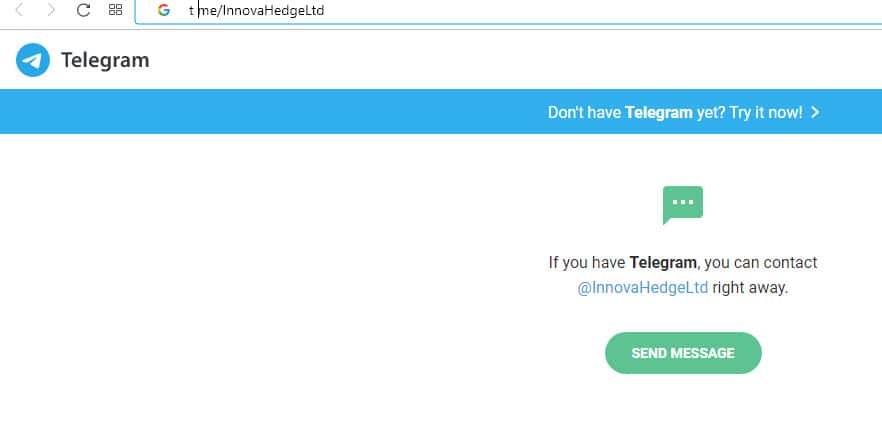 Как оказалось, 2 ссылки из 3-х на социальные сети, которые размещены на сайте шараги InnovaHedge не работают, поэтому нам удалось запечатлеть только приглашение на присоединение к каналу в Телеграм. Чтобы вы не попались на их удочку и развод в соц-сетях, предлагаем ознакомиться с ниже опубликованной информацией: