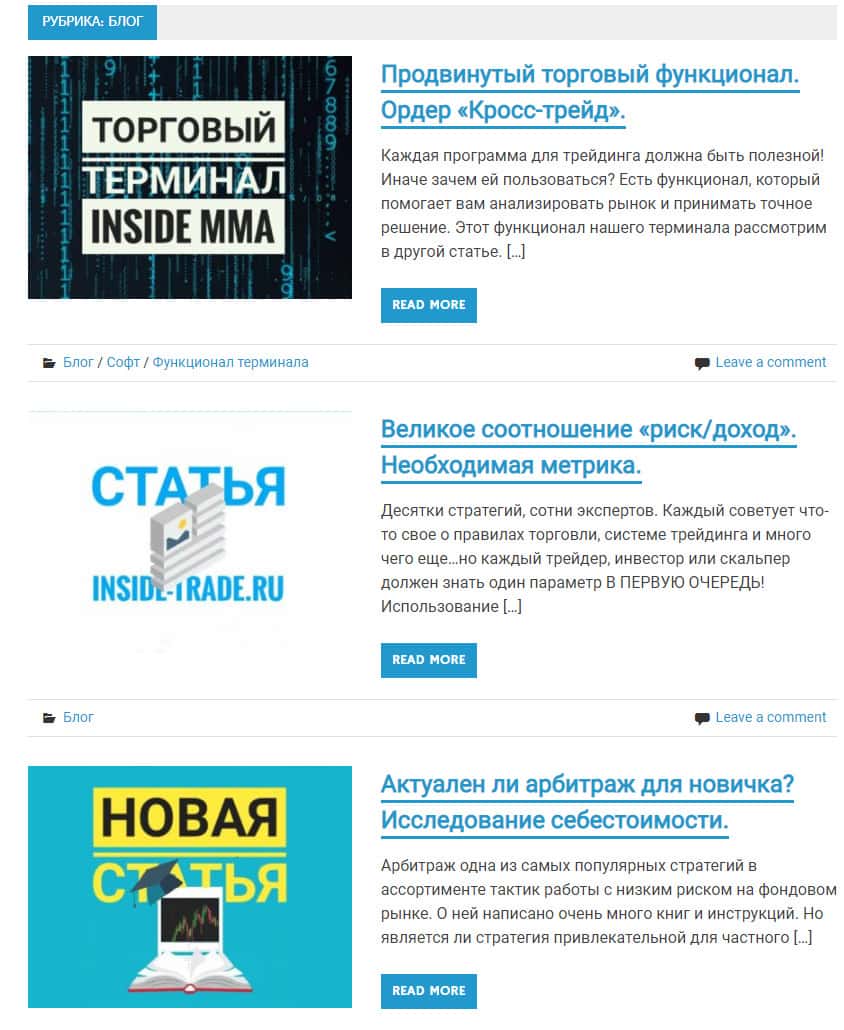Следующий раздел интернет-портала надувательского брокера Inside-Trade посвящен собственному блогу, которые ведут сотрудники данной конторы, который обучает новичков-трейдеров азам трейдинга, рассказывает о новинках данного вида заработка. В общем, пускают пыль в глаза наивным пользователям, дабы выбить из них денежки.