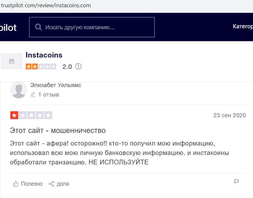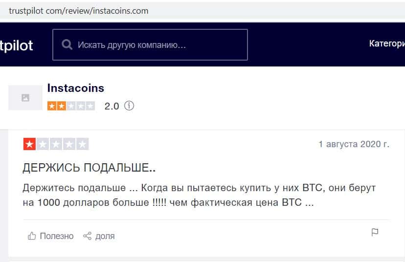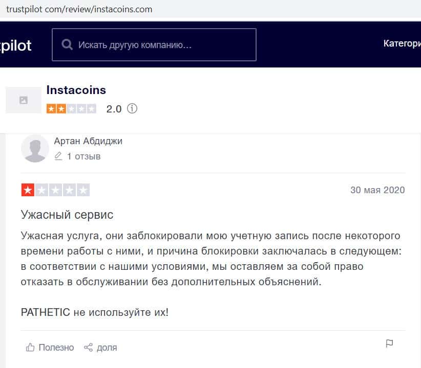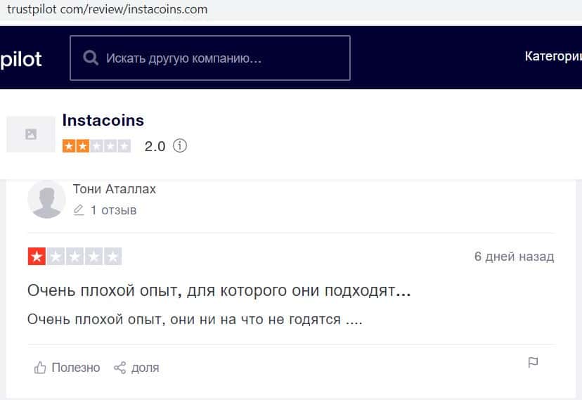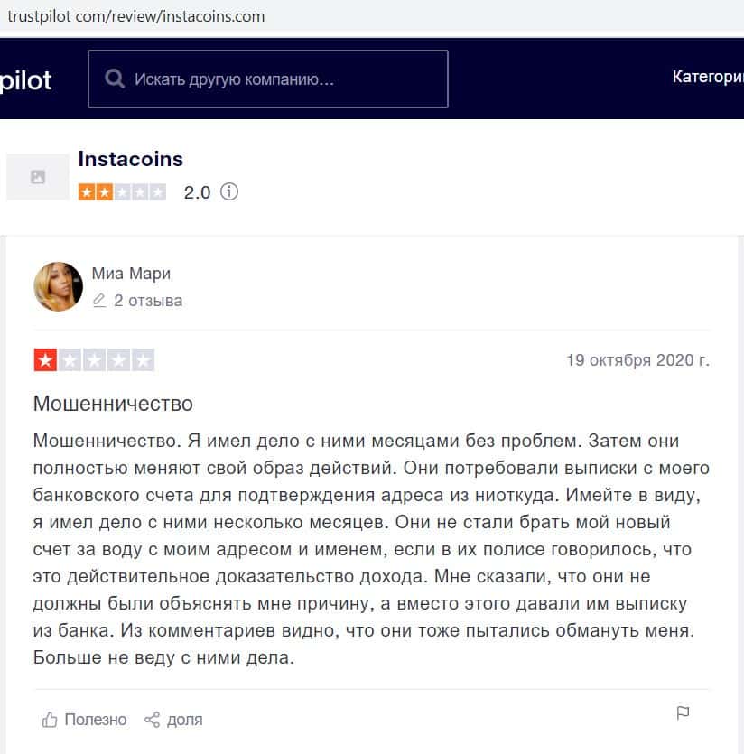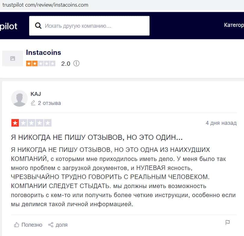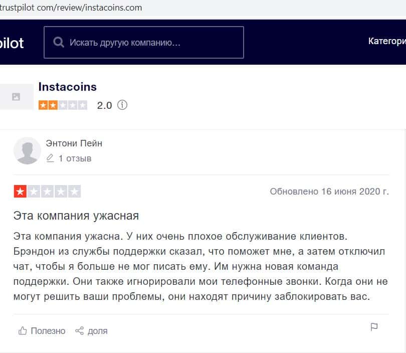 Другой пользователь выразил мнение, что контора Инста Коинс никуда не годится. Он имел очень плохой опыт работы с это организацией.