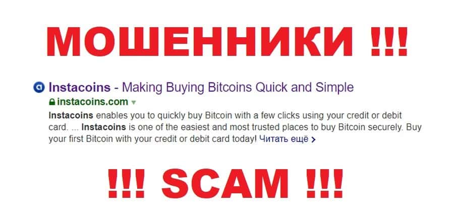 Инста Коинс - очередная компания жуликов, которая бессовестным образом кидает людей на деньги. Мошенники пишут у себя на сайте, что их ресурс предназначен для покупки биткоинов, он безопасный и надежный. Но это не так, имеется жалоба от клиента, где указано, что данный сервис участвовал в жульнической схеме при которой у людей отобрали серьезную сумму. Получается, что компания сотрудничает с мошенниками, помогая им грабить клиентов. К тому же контора нелицензирована, что является первым признаком лохотрона. Также существуют и другие доказательства их нечистоплотности. Не стоит доверять компании InstaCoins, которая обманывает пользователей!