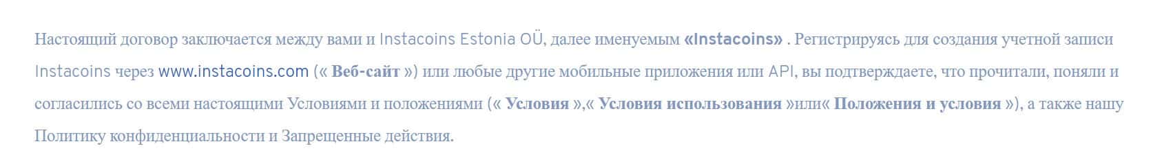 Далее вы можете ознакомиться с полным текстом клиентского соглашения компании Инста Коинс в переводе на русский язык.