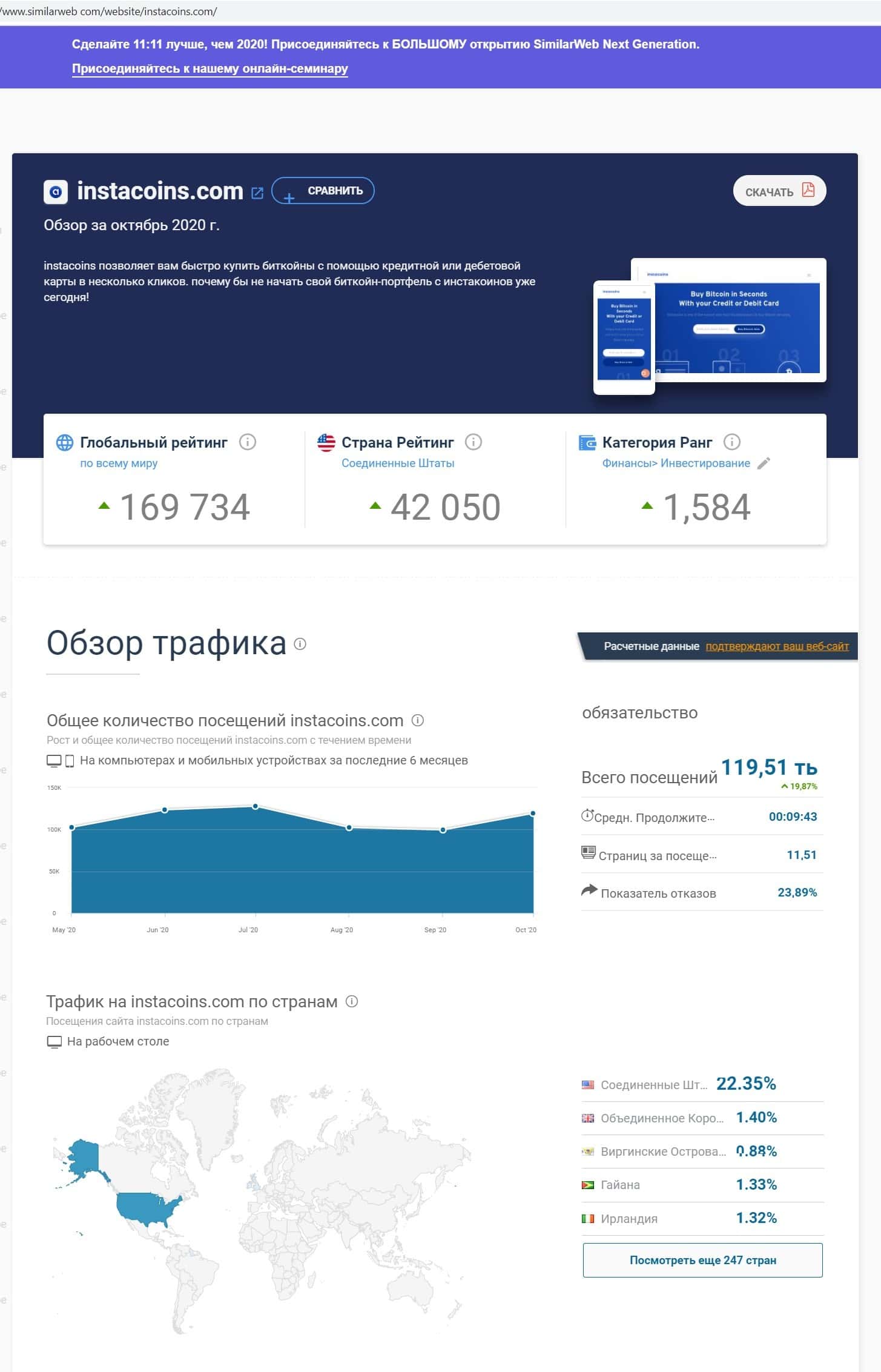 Данные сервиса проверки трафика Симиларвеб о домене instacoins com
