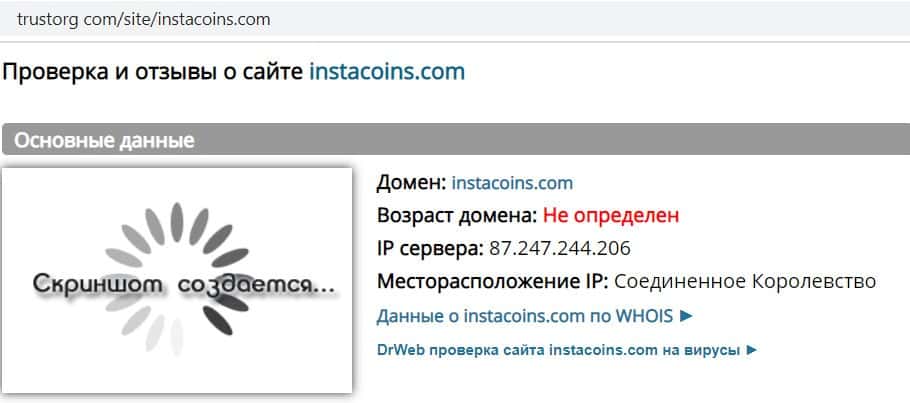 Возраст доменного имени сайта instacoins com сервису Трасторг определить не удалось. Жулики скрыли всю информацию о домене.