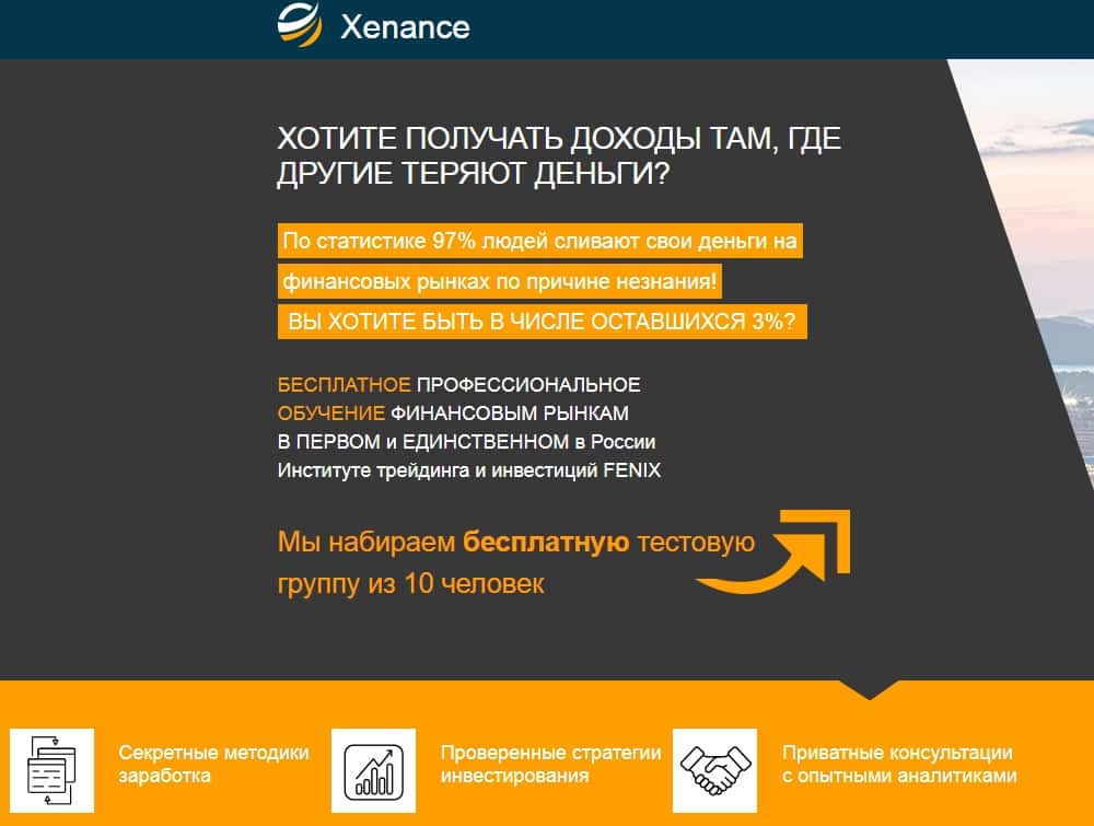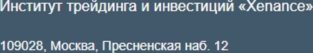 Несмотря на то, что свою шарагу Xenance жулики позиционируют как институт трейдинга, проверить отзывы о нем оказалось довольно проблематично. Их просто напросто нет. Ни хороших, ни плохих. А все очень просто. Хороших нет и быть не может, так как это очередное кидалово, а плохие просто подчищены махинаторами Xenance.