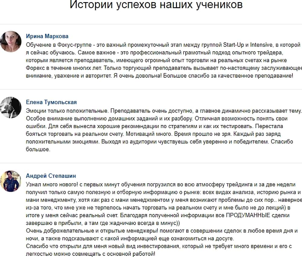 Еще на своей поделке-недоделке, именуемой сайт, прохвосты Институт трейдинга и инвестиций опубликовали якобы отзывы от своих ученичков-выпускничков. Конечно же все они лестные и рассказывают как все замечательно в конторке Институт трейдинга и инвестиций. На деле же, все фотографии просто стянуты из интернета, а имена - выдумка.
