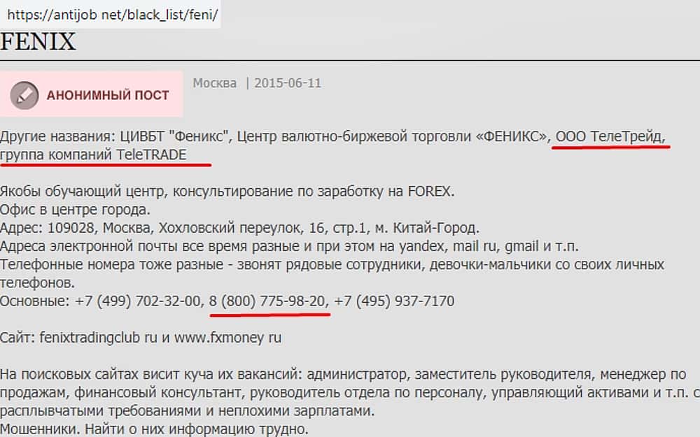 С номером телефона история тоже не простая. Оказывается, что этот номер используют мошенники Fenix Trading Club, которые в связи с неоднократными жалобами обманутых трейдеров переименовались в Лицензированный Институт Трейдинга и Инвестиций, но воровская сущность от этого никуда не исчезла.
