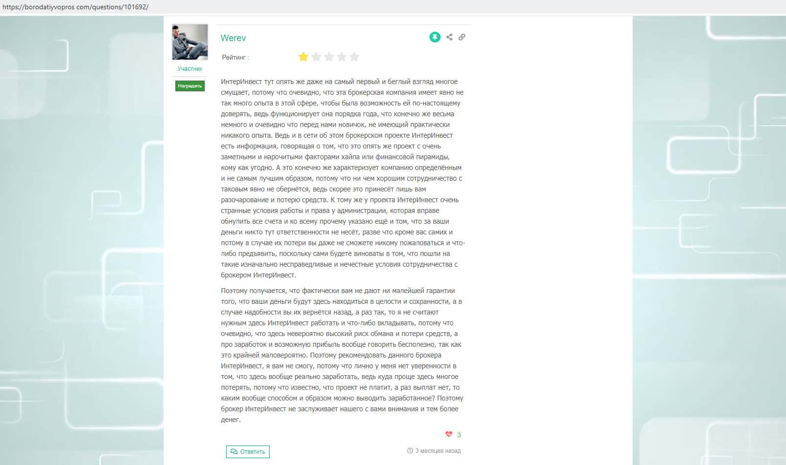 - Отзыв о Интер Инвест на сайте borodatiyvopros com от пользователя Werev