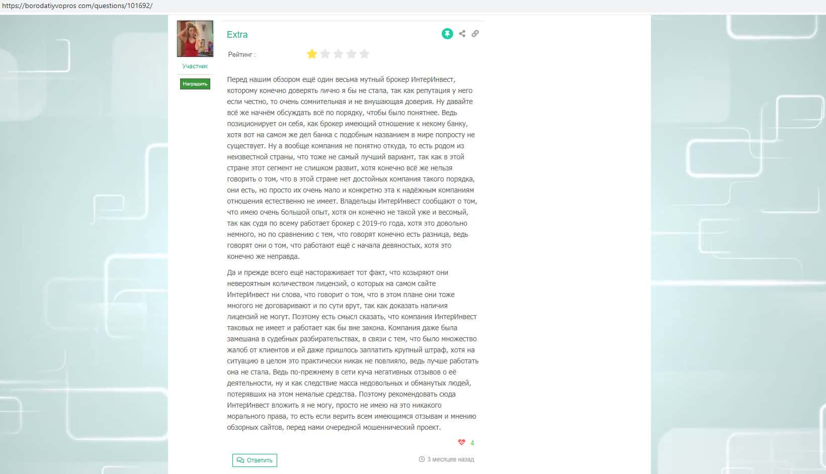 - Отзыв от Extra про Интер Инвест оказался негативный