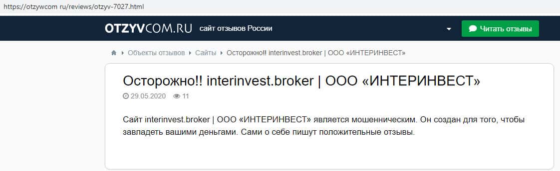 - Интернет-сервис otzywcom ru пишет негативные слова об Интер Инвест