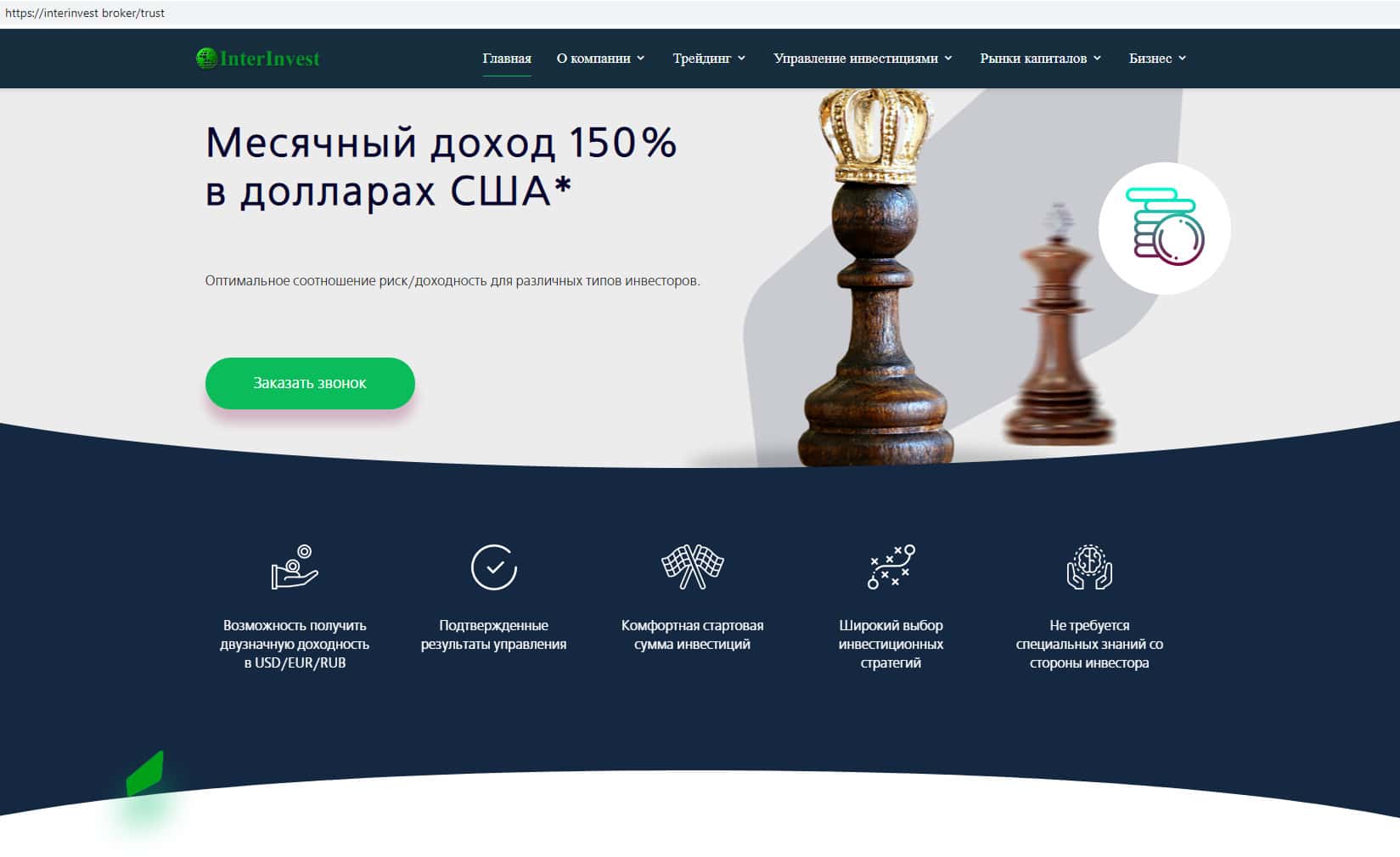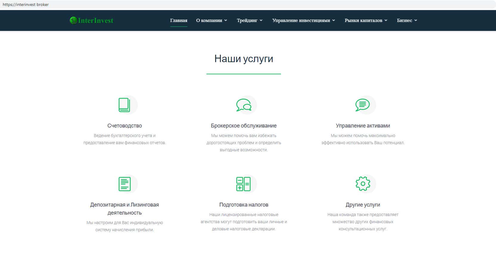 Интер Инвест Брокер - очередной мошенник на финансовом рынке. Он пытается втереться в доверие своего посетителя, рассказывая о великих своих достижениях в сфере предоставления услуг трейдерам и так далее. Ни в коем случае не ведитесь на развод Интер Инвест Брокер.