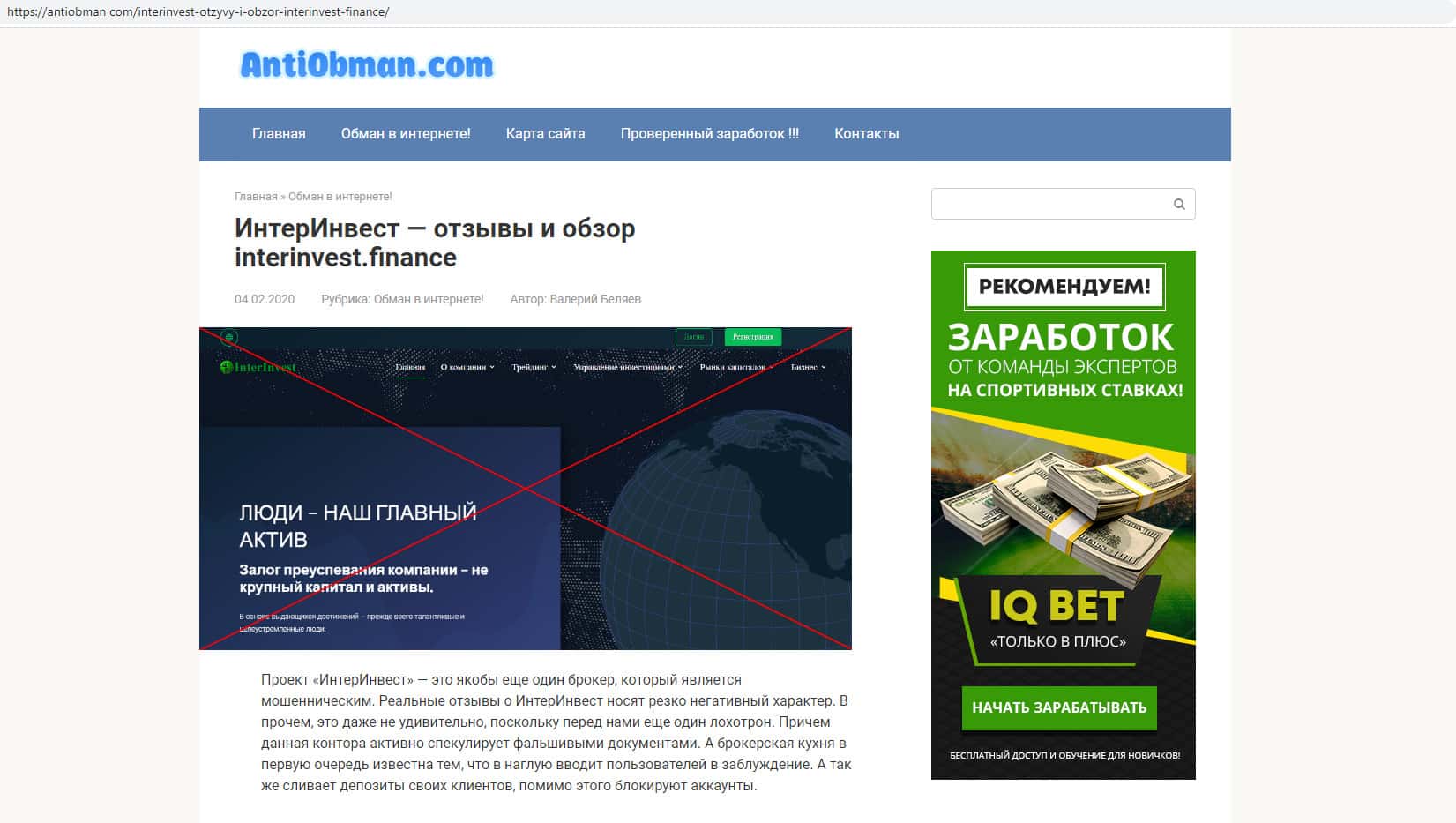 - AntiObman рассказывает о "брате" нашей мошеннической кухни InterInvest Broker
