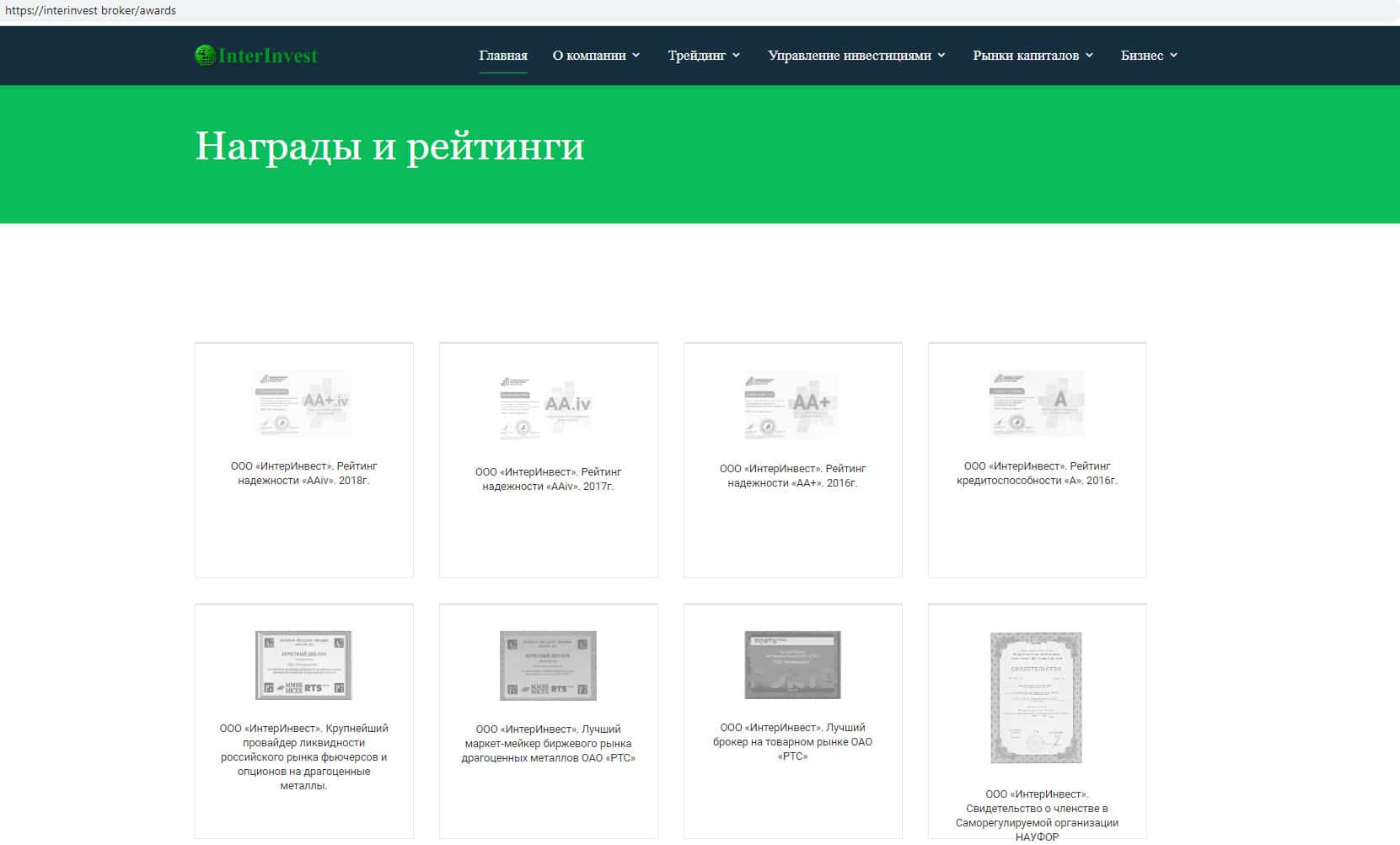 На сайте нам предлагают ознакомиться с их наградами и премиями, чтобы мы поняли какие они серьёзные, так как им нужны люди, готовые отдать им своим честно заработанные деньги. Но если мы посмотрим на какой-то конкурс со стороны организаторов и прочитаем документы с протоколами, то мы увидим, что контора Интер Инвест Брокер даже не участвовала.