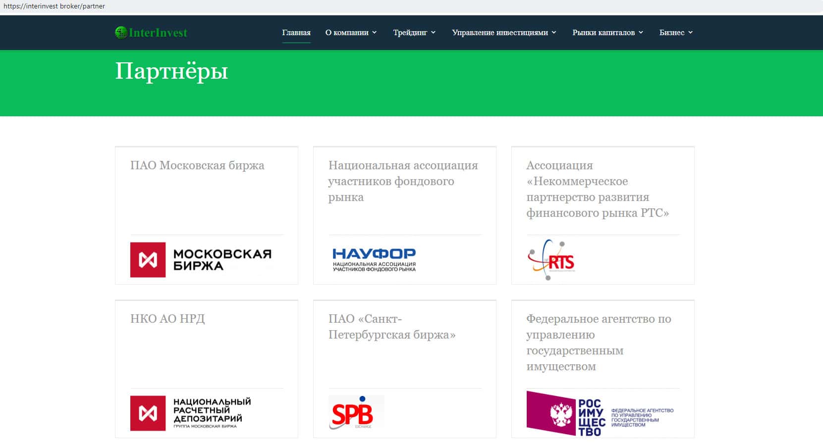 На сайте Интер Инвест нам предлагают ознакомиться со списком партнёров этого самого проекта. Только вот, если мы посмотрим сайты этих самых партнёров, то ничего не увидим об Интер Инвест Брокера. И даже, если они инвестируют средства клиентов в эти компании, то откуда такая огромная прибыль, которой нет даже у самых крупных инвесторов этих компаний.