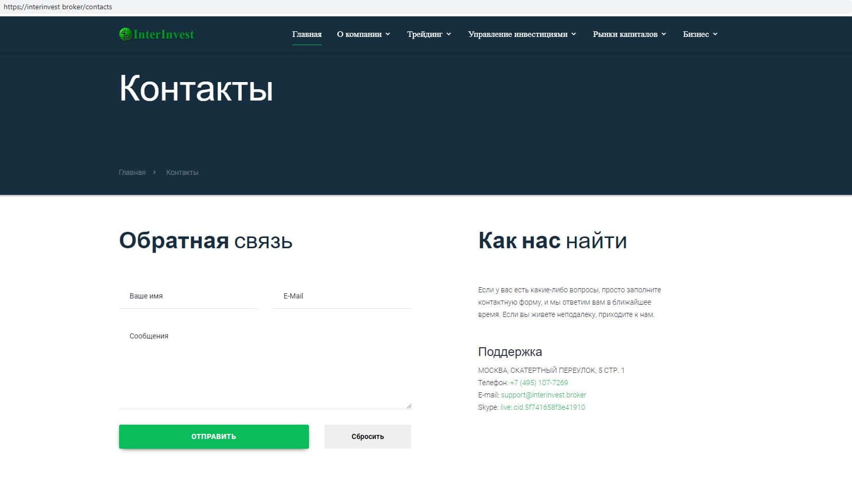Стоит заметить, что данные для контакта с Интер Инвест очень интересные: номера телефона не существует, по указанному адресу не существует никакой компании, только адрес электронной почты и аккаунт Skype существует, так как это обычная практика у мошеннических скам проектов.