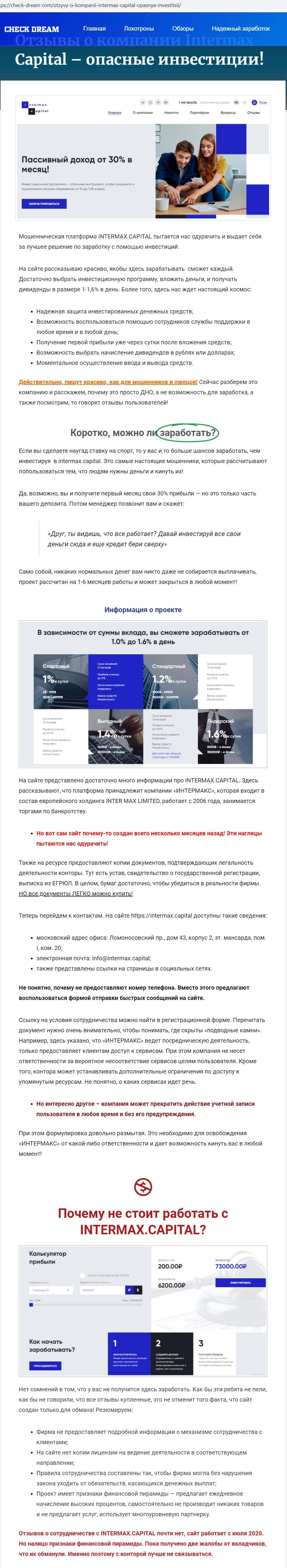 На сайте check-dream com опубликован обзор компании Интер Макс Капитал, где говорится, что мошенники пытаются одурачить людей и выдать себя за приличную контору.