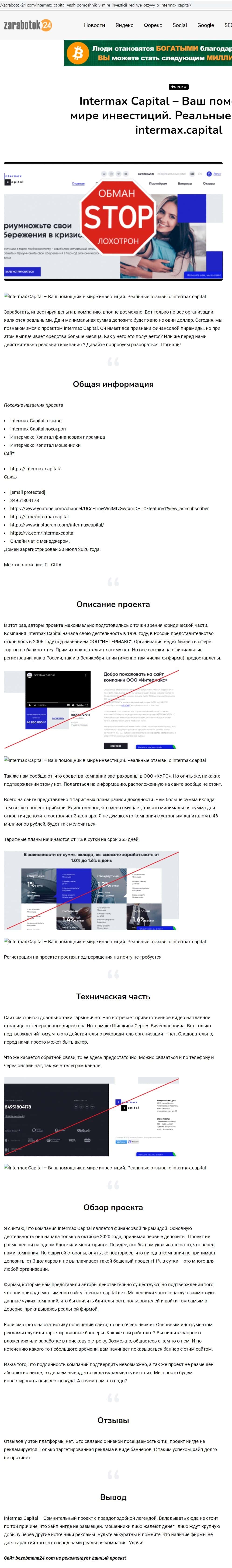 Автор материала с сайта zarabotok24 com считает проект Интер Макс Капитал жульническим, так как махинаторы обещают очень высокие проценты своим вкладчикам.