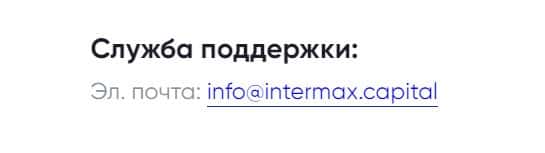 На сайте фальшивой шарашкиной конторы InterMax Capital нет телефонного номера. Нашлась только электронная почта в разделе сайта Контакты.