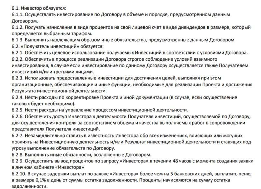 Прочитав пункт 6.1 договора Интер Макс Капитал, пользователь может узнать о своих обязанностях перед инвестиционной компанией, которые он обязан исполнять.