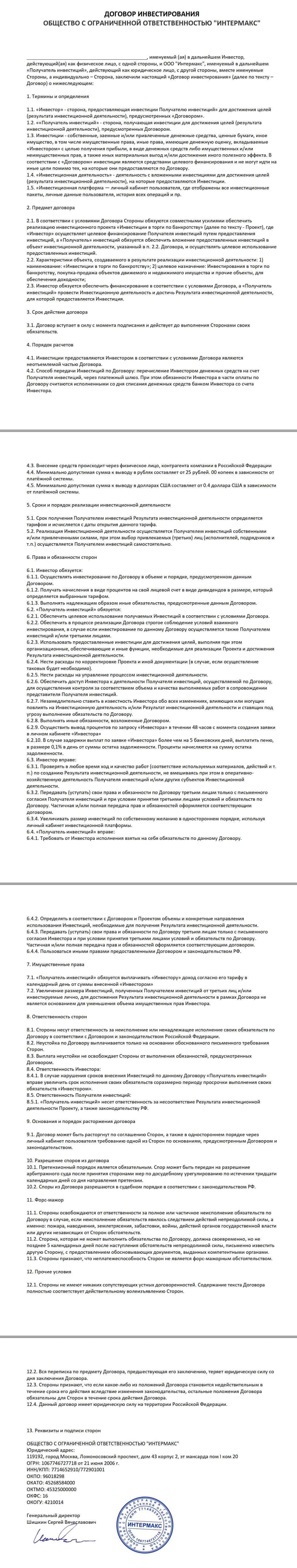 Ниже вы можете прочитать полный текст клиентского соглашения компании Интер Макс Капитал.