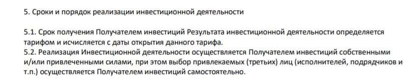 Раздел 5 договора компании Интер Макс Капитал рассказывает о сроках и порядке реализации инвестиционной деятельности.
