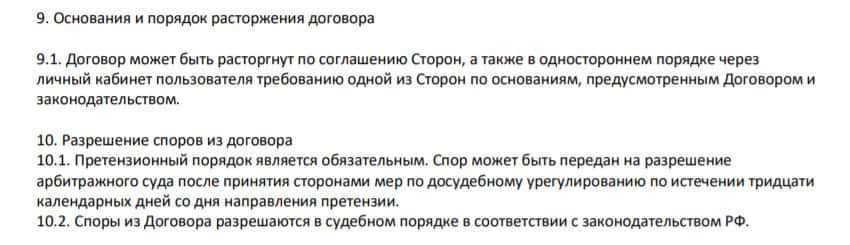Раздел 9 называется Основания и порядок расторжения договора. Там идет речь о том, при каких условиях может быть разорван договор между Интер Макс Капитал и клиентом.