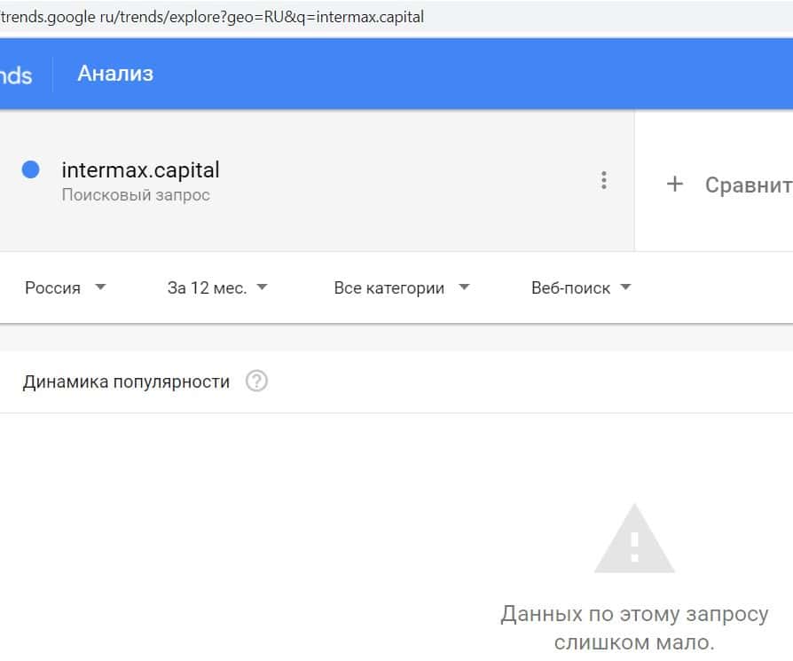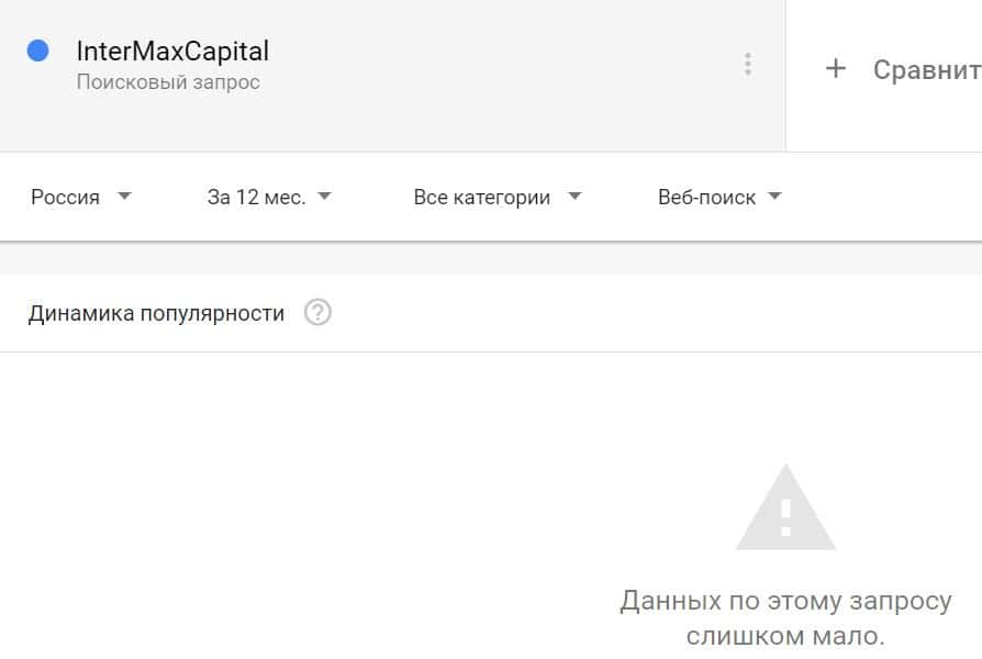 Судя по данным сервиса Гугл Тренд, было немного желающих искать в сети сайт "intermax.capital" данной мошеннической конторы.
