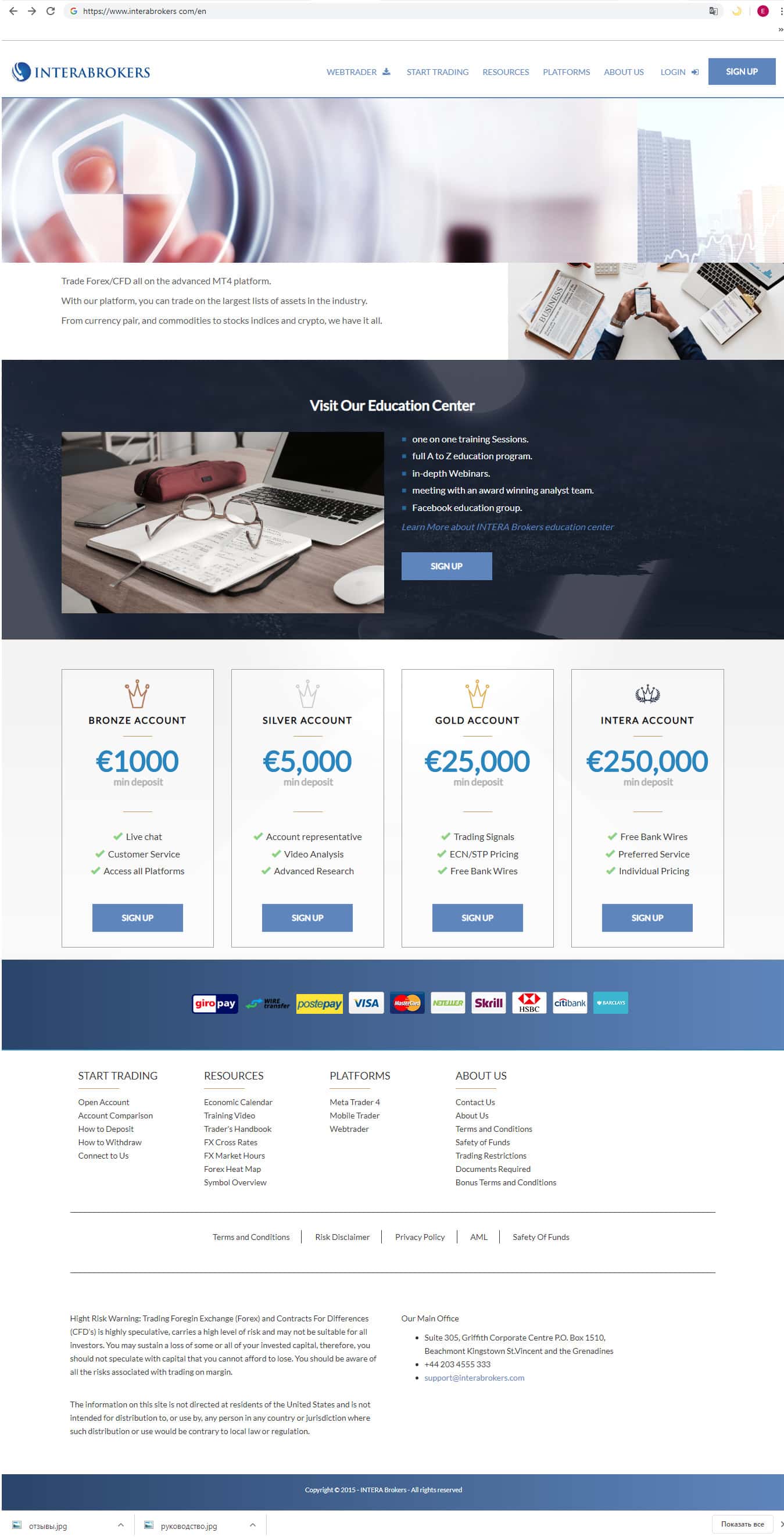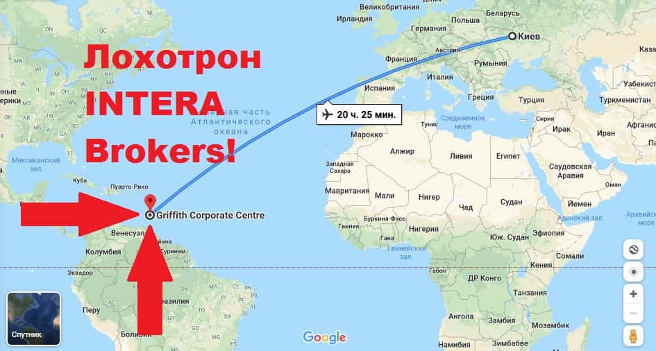 Лохотрон INTERA Brokers - расположился на Южно-Карибском островном государстве Сент-Винсент и Гренадины. Выбрано это место, так как это важный офшорный финансовый центр, и там очень легко и прибыльно можно получить лицензию. Так же это очень неплохое место скрыться от обманутых клиентов.