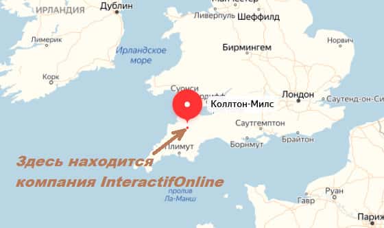 Офис компании InteractifOnline по сведениям из ее официального сайта находится в британской провинции Коллтон-Милс. Хотя Великобритания в принципе не является оффшорной зоной, но на ее территории весьма охотно регистрируются различные компании с ограниченным налогообложением.