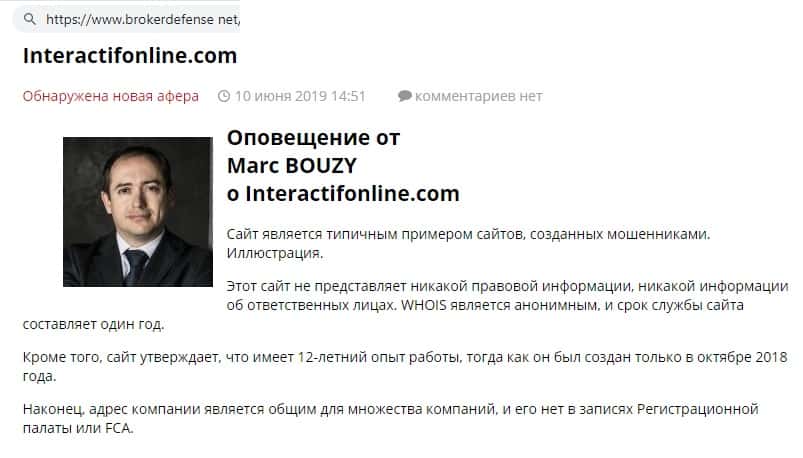 - Сайт InteractifOnline Com неавторизован и является незаконно действующим