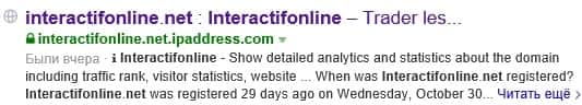 Сплошная неразбериха с доменными адресами сайта брокерской компании Интерактив Онлайн. Сначала он был зарегистрирован по имени InteractifOnline Сom, но сейчас все поисковые системы выдают ссылки на адрес InteractifOnline Net.