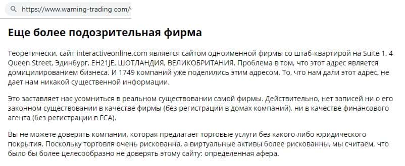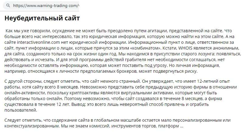 Компании Интерактив Онлайн нельзя доверять, так считают на информационном сайте warning-trading com