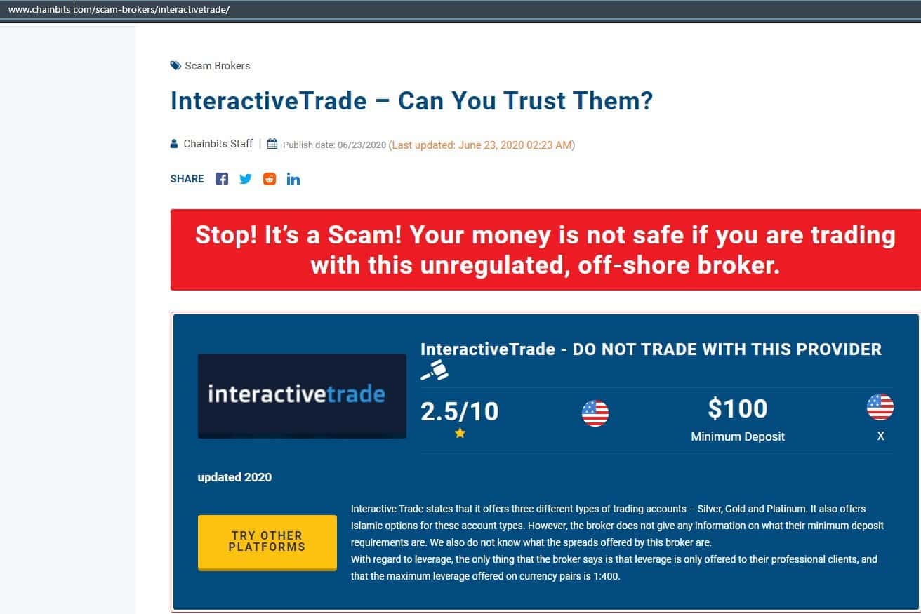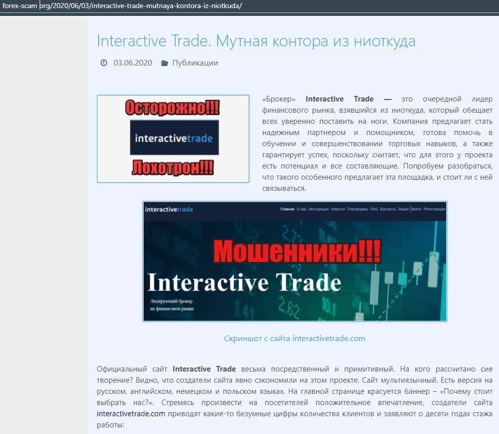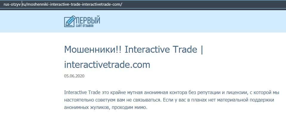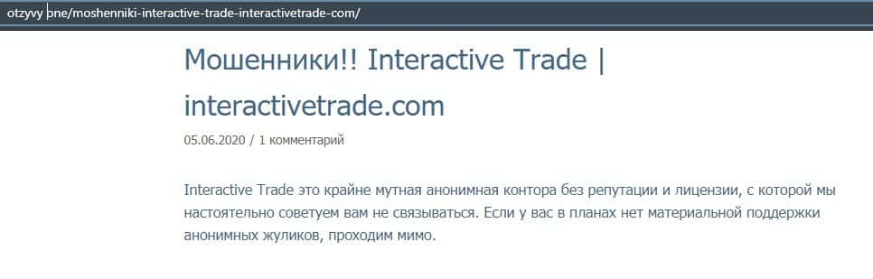 В следующей публикации описывается, что контора InteractiveTrade - это крайне мутная контора, которая не имеет лицензии и прославилась довольно скудной репутацией.