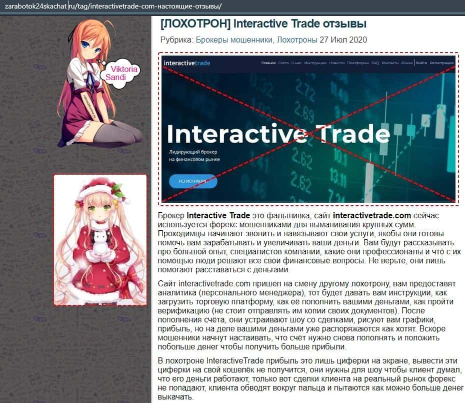 Далее представлена разоблачительная статья о деятельности лохотрона InteractiveTrade, где указывается, что они являются очередным лидером по разводу клиентов на деньги.