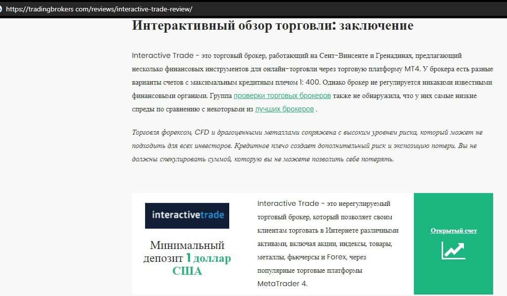 Статьи с других ресурсов о конторе InteractiveTrade