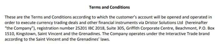 Исходя из официальных данных о конторе Интерактив Трейд, ею владеет некая компания Dristor Solutions Ltd, которая зарегистрирована на островах Сент-Винсент и Гренадины.