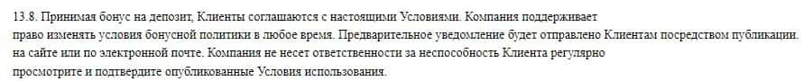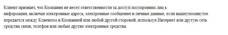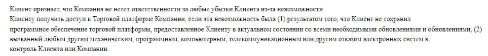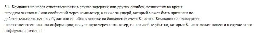 Еще в соглашении сказано, что они не несут ответственности в случае задержек или других ошибок в процессе торговли, которые приведут счет к убыткам или полному обнулению.