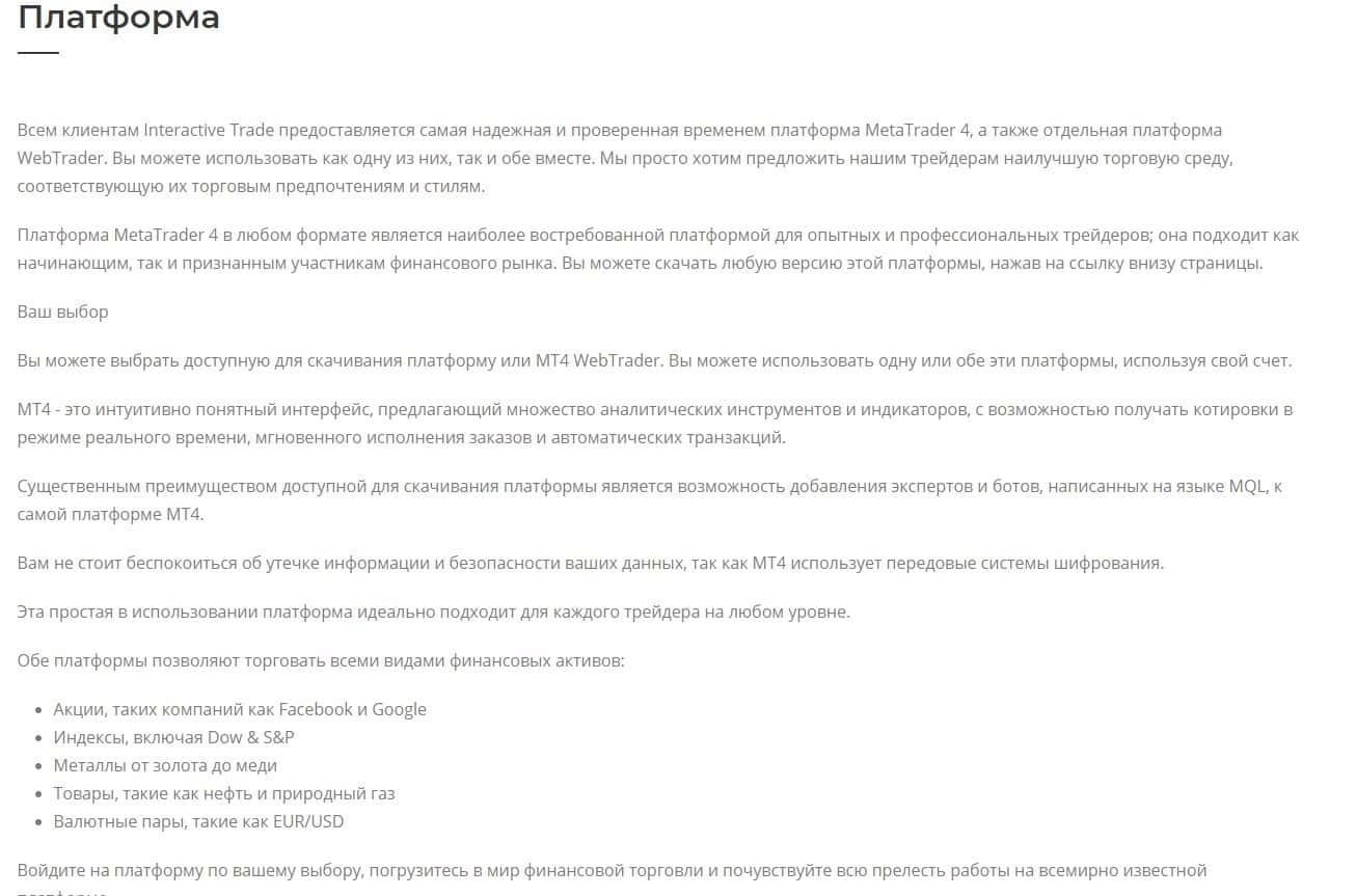 Все о торговой платформе конторы InteractiveTrade