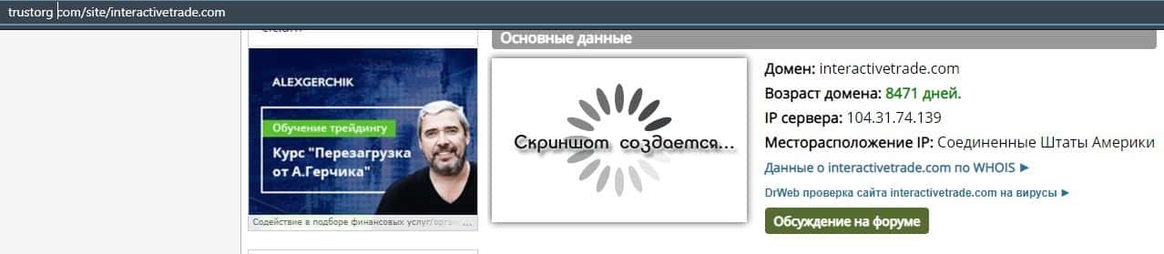 - О возрасте домена мошенников interactivetrade com