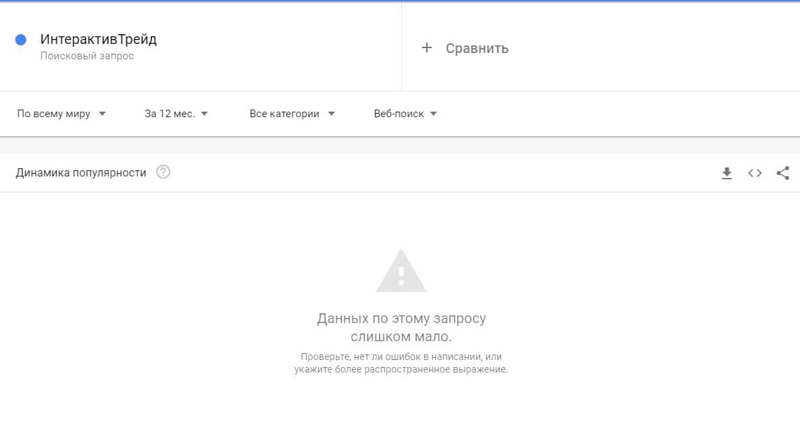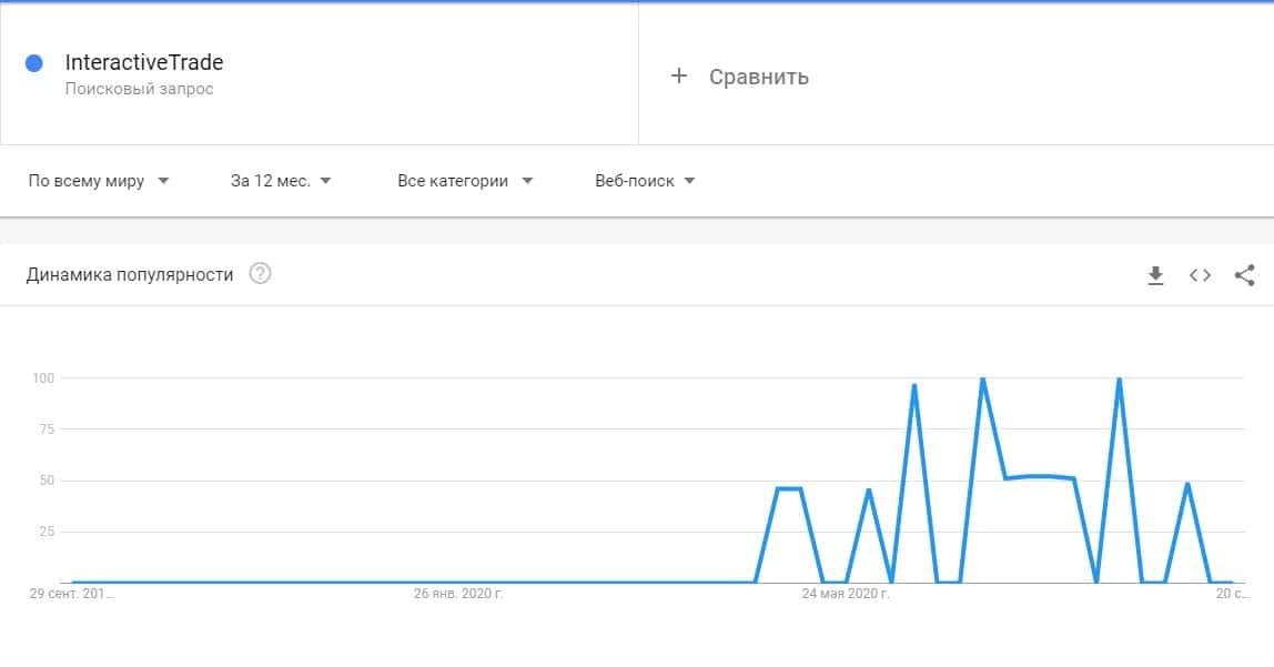 А вот бренду лохотрона "ИнтерактивТрейд" также не повезло, потому что запрос по нему не был замечена никакая активность, так как они не популярны в Гугл.