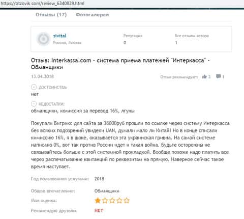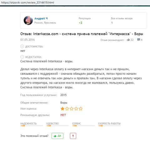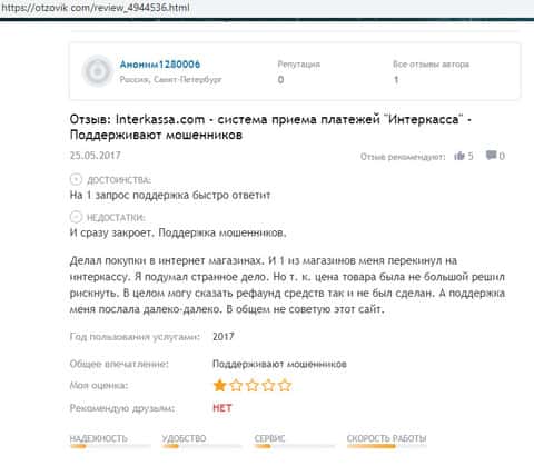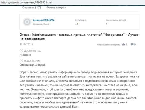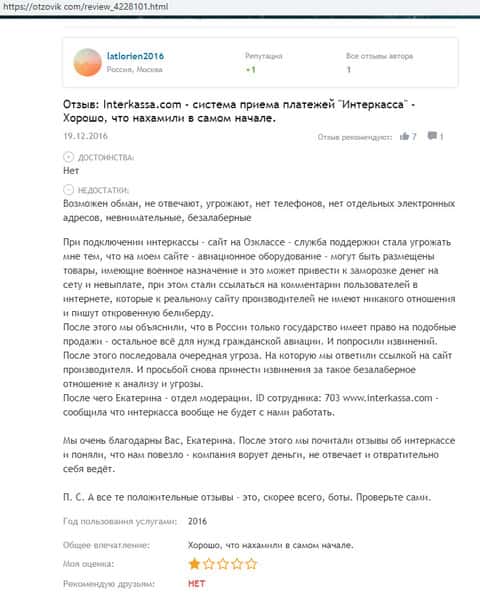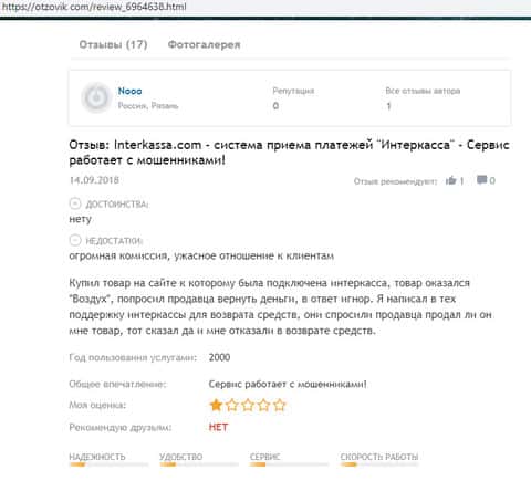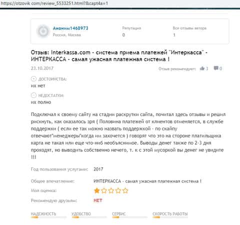 - Отзыв наивного пользователя сети о лохотроне Интеркасса с портала otzovik com