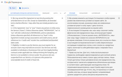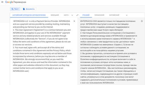 Несмотря на то, что весь сайт у аферистов Интеркасса представлен на русском языке, свои условия сотрудничества мошенники InterKassa Com представляют на английском языке, да и выделить данное соглашение и скопировать для дальнейшего перевода не представляется возможным, что определенно говорит о нежелании шулеров Интеркасса знакомить клиентов со своими условиями.