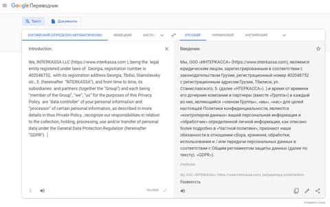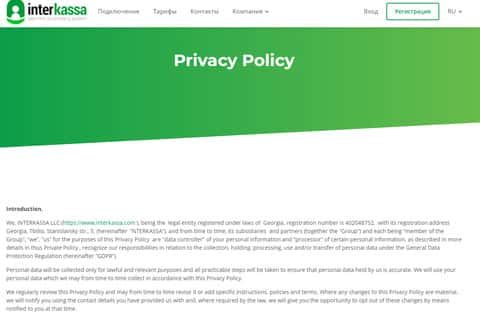 Несмотря на то, что сайт у шулеров InterKassa Com представлен на русском языке, политика конфиденциальности жуликов Интеркасса, аналогично условиям сотрудничества, представлена на английском языке, что опять же говорит о нежелании мошенников InterKassa Com знакомить наивных пользователей сети со своей политикой конфиденциальности, что вы можете увидеть на изображении ниже.
