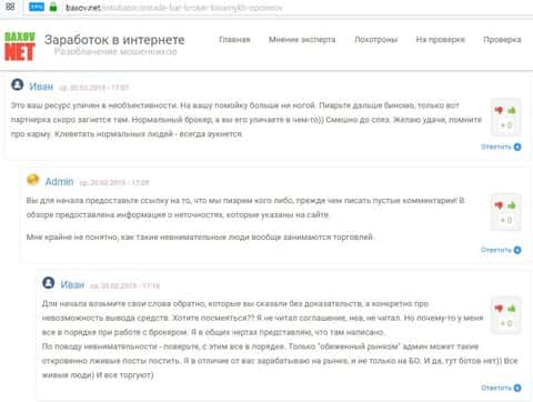 Ниже представлена переписка с одним заядлым засланным казачком, который борется за права лохотрона под названием ИнТрейд Бар. Аферист заявляет, что администрация сайта бахов нет гонит клевету на этого брокера и требует изменить мнение. Понятно дело, что это проплаченная пиар-акция, так как к ней подключается еще несколько бинарных-патриотов, которые начинают откровенно гнать на автора статьи. Сколько интересно платят этим продажным тварям?