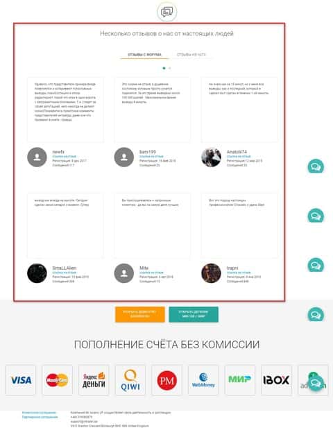 Дальше идет самое интересное - это липовые отзывы от проплаченных пользователей интернета. Аферисты ИнТрейд Бар пользуются данным сервисом, дабы заполучить внимание и деньги новых лохов. Там есть как отзывы обычные, так и скриншоты с чатов, где производится развод лопухов. Не стоит доверять этой гнусной писанине, а тем более передавать шулерам деньги.