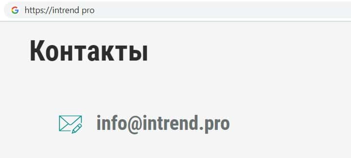 Так же ИнТренд в качестве контактных данных представил клиентам адрес электронной почты, где менеджеры фирмы будут только завлекать в свою контору. Почта аферистов: